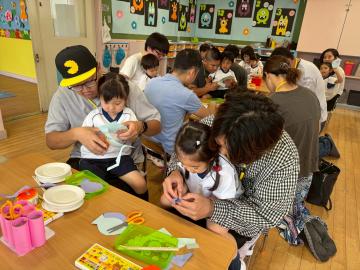 年少中さんは保護者の方と製作をして、作ったもので楽しく遊びました!🐟💧